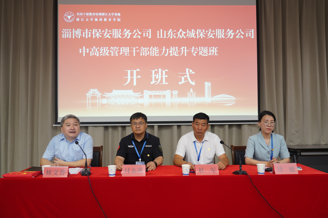 7月3日上午,淄博市保安服務(wù)有限公司、山東眾城保安服務(wù)有限公司聯(lián)合舉辦的中高級(jí)管理干部能力提升專(zhuān)題班(第一期)在浙江大學(xué)開(kāi)班,60余名干部學(xué)員參加開(kāi)班式。浙江大學(xué)繼續(xù)教育學(xué)院紀(jì)委委員、華東一區(qū)培訓(xùn)部部長(zhǎng)林文普致辭,市保安公司黨委書(shū)記、董事長(zhǎng)付志欣作開(kāi)班動(dòng)員講話。