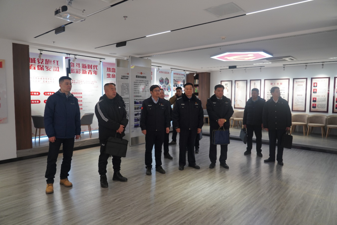調(diào)研組實地參觀了淄博市保安服務(wù)有限公司政治生活館、指揮中心、體能訓(xùn)練館、榮譽長廊。座談會上,淄博市公安局治安支隊分管大隊長李春江介紹了公安機關(guān)保安監(jiān)管工作,淄博市公安局治安支隊一級警長林長見介紹了我市警保聯(lián)勤聯(lián)動的主要做法,淄博市保安協(xié)會會長、淄博市保安服務(wù)有限公司黨委書記、董事長付志欣介紹了公司近年來守正創(chuàng)新發(fā)展情況。隨后就警保聯(lián)勤聯(lián)動、保安行業(yè)發(fā)展等方面,雙方做了詳細探討并互相交流了經(jīng)驗。