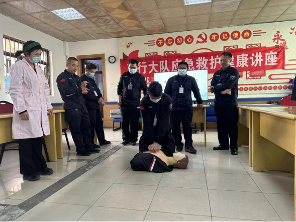 為進(jìn)一步提高基層員工面對(duì)突發(fā)疾病的應(yīng)急處置能力,近日,金融護(hù)衛(wèi)中心工行大隊(duì)特邀湖田中心醫(yī)院醫(yī)生,在大隊(duì)駐地開(kāi)展應(yīng)急救護(hù)健康講座。 講座現(xiàn)場(chǎng),醫(yī)生認(rèn)真細(xì)致地講解了心肺復(fù)蘇的基本流程和步驟,并對(duì)徒手心肺復(fù)蘇操作要領(lǐng)進(jìn)行了重點(diǎn)說(shuō)明。隨后現(xiàn)場(chǎng)演示了胸外心臟按壓、清理口腔異物、開(kāi)放氣道、人工呼吸,并對(duì)心肺復(fù)蘇按壓深度、按壓頻率等重點(diǎn)環(huán)節(jié)的操作要領(lǐng)和流程逐一進(jìn)行講解和示范。隊(duì)員們積極參與,現(xiàn)場(chǎng)體驗(yàn)徒手心肺復(fù)蘇操作,確保此次活動(dòng)取得實(shí)效。 工行大隊(duì)將持續(xù)深化關(guān)心關(guān)愛(ài)基層職工工作,不斷提升職工應(yīng)對(duì)突發(fā)緊急事件的自救和處置能力,增強(qiáng)職工的獲得感、幸福感。